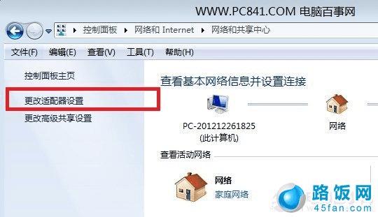 3、进入网络和共享中心之后,我们再点击左侧的“更改适配器设置”,如下图: