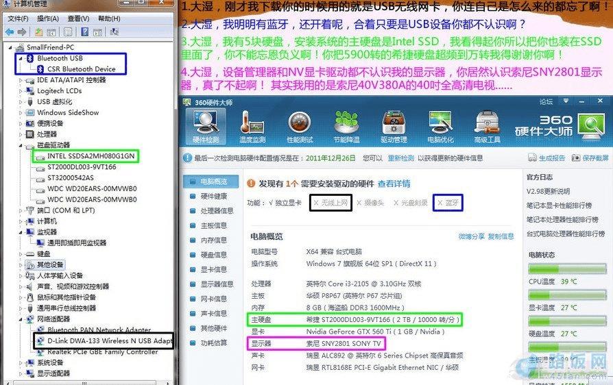 确实360硬件大师是一个小白级别的产物,漏洞很多尤其是显卡和温度方面。看下面的例子: