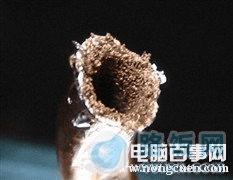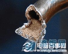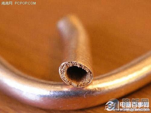 结网管在这几种热管中,毛细结构最明显,吸附效果最好,不过造价也高不少,它的渗透率很低不利于填充物回流,而且弯折效果不如烧结管,所以应用不是很多。烧结管在现在散热器中应用最多,但同样是烧结管,质量也不太一样。从图中可以看出上面的热管管壁很薄,而且内部粉末的烧结工艺也远不如下面的,所以导热效果也不尽相同。