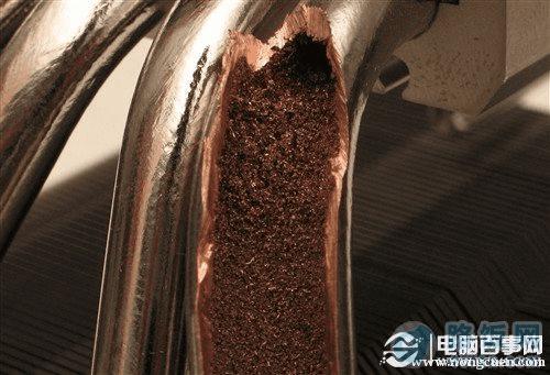 烧结管是现在比较常见的热管之一,内壁是大量烧结粉末,这种热管吸附能力强,而且弯折后也能表现出较好的效果,相比沟槽管要好得多,不过制作成本相对要高一些,而且导热填充的回流速度要慢一些。
