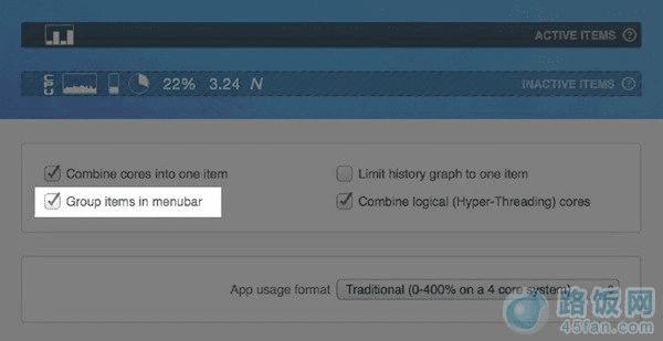 相信在开启某些功能时,部分用户会选择两种,甚至更多组合,用来同时显示,虽说如此,但也不等于下拉菜单就能做到(旧版本),开发商当然也考虑到了这点,因此加入了 Group Items In Menubar 功能。