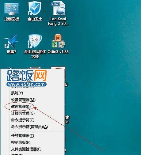 1、在Win8桌面上,单击开始》磁盘管理。或者直接使用键盘上的Win+X键进入。