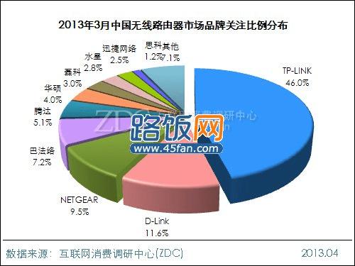 随着无线路由器的普及,包括无线终端(手机、iPad等)对无线路由器的需求量日益增多。上月ZDC数据统计信息显示,无线路由器厂商TP-Link的关注度仍处在头把交椅上,D-Link和美国网件分列二三位。