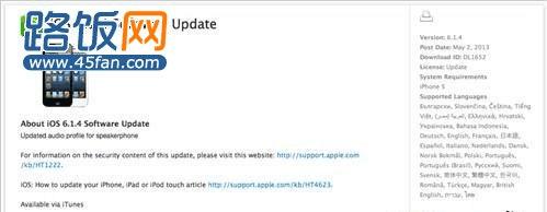 据昨日(2013年5月3日)苹果官方正式发布iPhone5固件更新,固件版本号iOS6.1.4。此次版本更新主要针对iPhone5通话质量存在断断续续的问题进行修复。