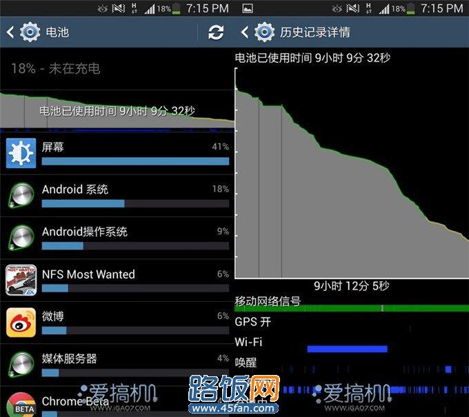 关于四核A15的耗电量,相信很多网友也会很感兴趣,这里也做相关测试,在日常中等强度(其中包括微博、网页以及游戏)使用中,经过9小时的使用以后,剩下18%的电量,表现中规中矩▼