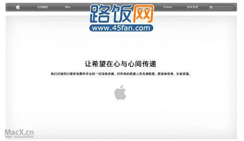 苹果公司为中国地震捐款5000万RMB,官网首页表慰问