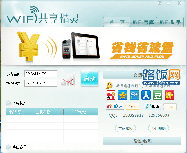 其实借助第三方软件也能轻易实现这一功能,而且设置更简单,操作更简便。尤其对于使用智能机虽然有包流量套餐,但还是担心流量的消耗,或者嫌本本上网麻烦,老需要拖着个有线网线,想实现无线wifi、wlan上网的童鞋来说,这无疑是最佳选择。要实现无线上网必然需要创建wifi热点,也就是说wifi共享软件必不可少,至今为止,最受好评、使用最稳定的就是wifi共享精灵了。