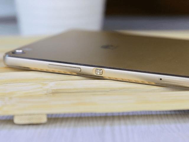 电源键、音量按键以及双SIM卡卡槽全部设置在右侧,而华为P8max所采用的CNC精铣等工艺,经历129道工序耗时40分钟而成的精粹在侧边框中已表现的淋漓尽致。双SIM卡卡槽的配置规格为:Nano-SIM+Micro SIM,支持移动联通双4G网络,同时还是支持热插拔SD卡。