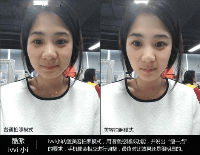 可以看到,该机有丰富的拍照模式可选,自拍也分为美容拍照与美妆拍照两种级别。其中,美容拍照模式的美颜功能甚至能达到整容般的效果。对此,笔者将信将疑,便找来美女同事进行测试。同事分别开启普通拍照与美容拍照,并利用该机的语音控制功能要求“瘦一点”,拍出的样张对比效果如下。