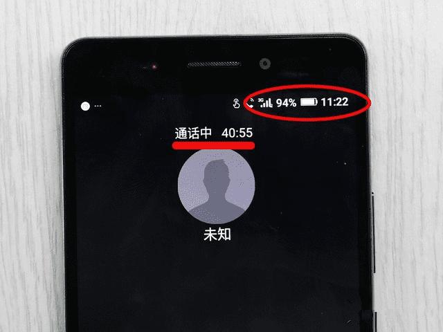试验过程有短暂中断,所以两个小时的通话时间有两段组成,通话时间从9:35—11:22,电量刚刚掉落到94%,通话时长大约有1小时47分钟。从数据上来看虽然和官方给出的有稍许差距,但5%的电量能实现近2小时的通话,也相当惊人。