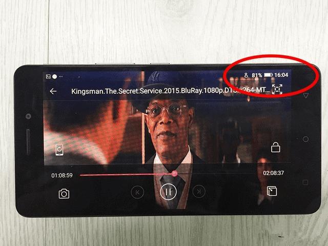测试时将Wi-Fi关闭,亮度调至60%,音量关闭,循环播放一段1080P本地视频。测试结果显示,从11:25开始到16:04的四小时四十分钟内,金立M1的电量从94%掉至81%,按照这样的速度计算,这款手机从满电状态到耗光电量,播放1080P视频支撑20小时没什么问题,这也和官方给出的数据相差不大。