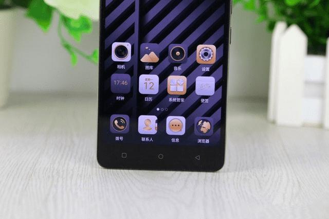 为了保持纤瘦身材,金立M5尽可能铺开摊平,所以5.5英寸屏幕的采用也不意外。正面设计延续常规思路,与金立S7相比有一项改进,就是将底部的三个安卓虚拟按键换乘实体触摸键,外观保持Android5.0样式效果不变,很多用户明确表示虚拟按键浪费屏幕,金立此举也属顺应民心。