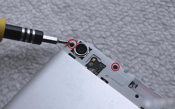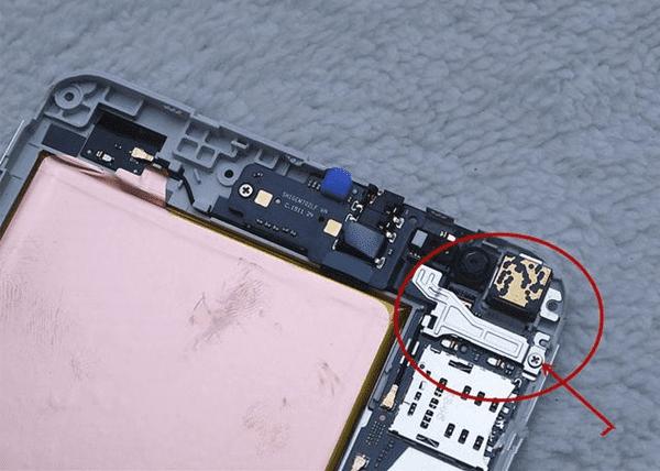 摄像头位置的排线也是通过金属固定架用螺丝来锁紧的,拆掉后置摄像头,就需要拆掉这个金属的固定架。