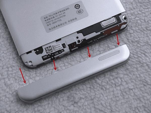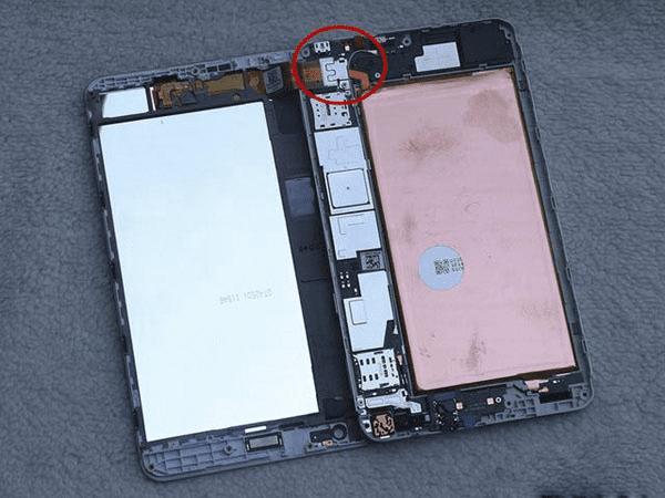 很顺利,就拆掉了顶部的小盖板,可以看见是用扣子来固定的,扣得相当的牢固,拆掉后,可以看见摄像头,闪光灯以天线等部件。