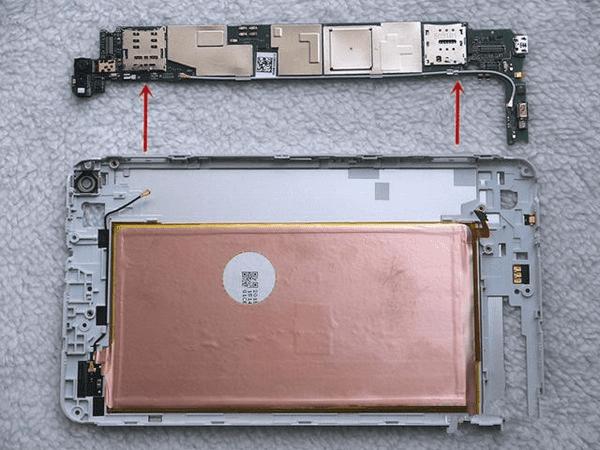 拆掉电池的排线,电池是5000毫安的容量,是排线连接的,这样利于自己换电池。