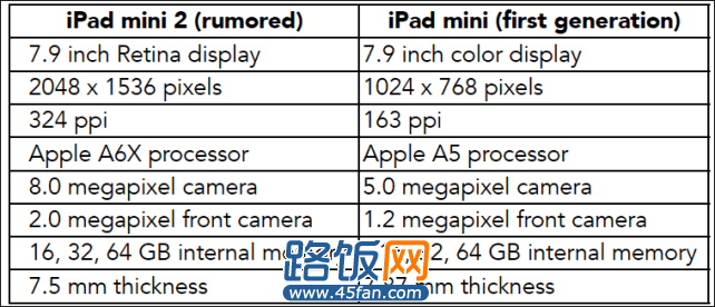 下面一起来看看此次曝光的iPad mini 2的详细参数: