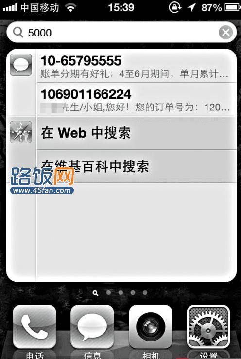 在iphone手机的搜索框里键入关键词,可以找到已经删除的短信,但无法全文阅读。