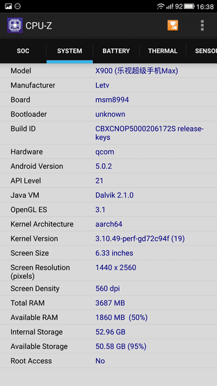 乐Max在硬件方面非常强悍,甚至可以说是做到目前旗舰机的极限。该机搭载了64位骁龙810处理吧,并且辅以4GBDDR4内存和Adreno430芯片,对于运行大型游戏或者应用可以说是易如反掌。另外,6.33英寸夏普定制2K显示屏也拥有着超光NTSC色域,实际视觉感受非常不错。