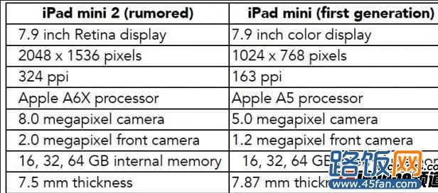 传闻版和iPad mini特性对比如下表: