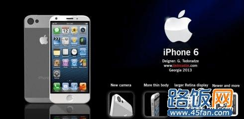 这款苹果iPhone 6概念手机配备了一个更大的Retina显示屏,屏幕尺寸为4.5或5.5英寸,相比iPhone 5屏幕更大,处理器采用苹果A7芯片,可能是四核处理器,采用1200万像素摄像头,iPhone 6相比iPhone 5手机更薄,大约仅有6毫米厚度。当然,目前硬件的规格都是猜测。
