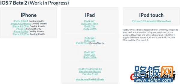 苹果在发布 iOS 7 Beta 1 的时候曾宣布,Beta 1 仅支持 iPhone 4、iPhone 4S、iPhone 5 和第五代 iPod touch。不过随后苹果便在官网上放出了 iOS 7 在 iPad 上的运行照片,设备包括 iPad 2、iPad 4 和 iPad mini。现在随着 Beta 2 的发布,苹果终于为这三款设备添加对 iOS 7 的支持。另外我们还可以看到第三代 iPad(WiFi版 )、AT&T 版第三代 iPad(WiFi + Cellular)以及 Verizon 版第三代 iPad(WiFi + Cellular)也被列入了 iOS 7 的支持范围。