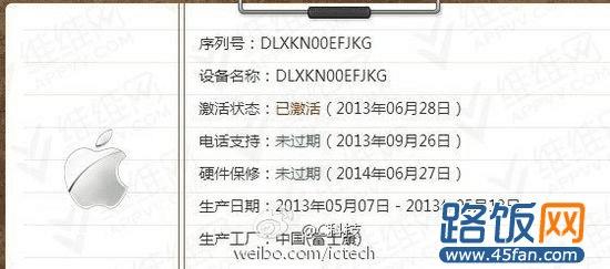序列号信息还显示,该设备生产商为富士康,而保修截止时间为2014年6月27日。目前情况来看,iPad5量产应该刚刚启动。那么可以初步判断,10月份iPad5应该会正式发布。