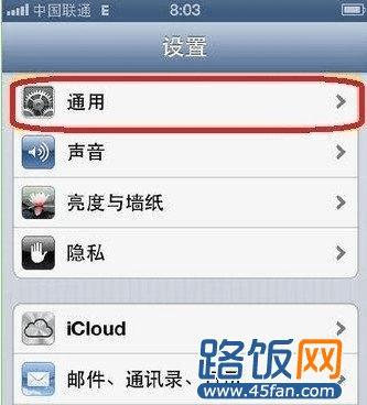 二、在设置列表中找到“通用”选项,点击进入,如下图所示: