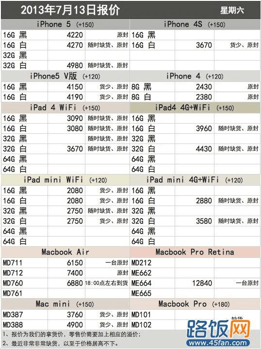 又到了每日苹果iPhone4S/iPhone5/iPad报价更新的时候了,下面就是今天下午出炉的各机型报价,没有什么大的变化。如下图所示: