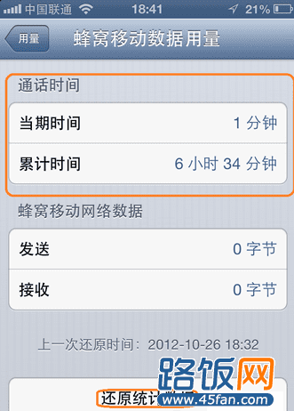 当期时间:是指我们在上一次“还原统计数据”开始到现在的总通话时间