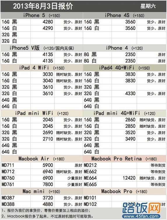 由于局域网刚刚恢复,所以只能等到现在才将今天的报价发布出来,迟到的苹果4/4S/iPhone5/iPad最新报价,具体详见下图: