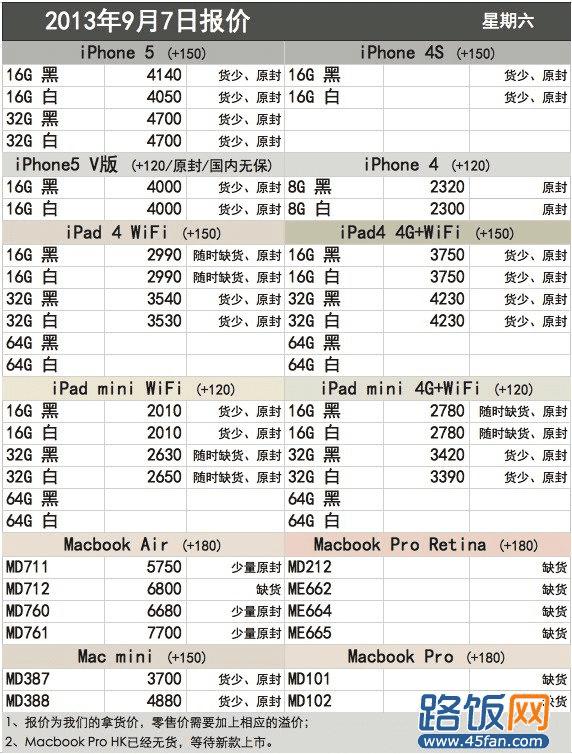 iPhone5 16G黑:4140元;iPhone 16G白:4050元;iPhone5 32G黑/白:4700元;