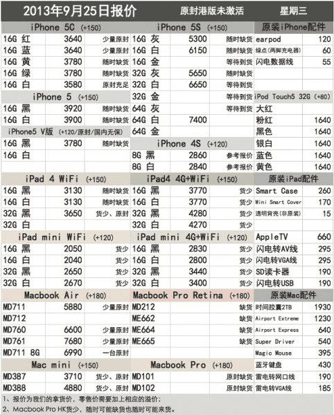 9月25日iPhone各系列产品报价更新(5S\5C,iPad)