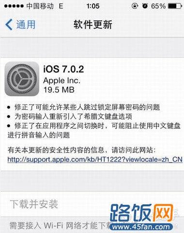 iOS7.0.2的更新主要修复如下BUG: