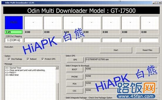 四、解压完毕后,打开 “Odin Multi Downloader v3.95.exe” 这个刷机工具,当刷机工具认到你的手机后就可以正式开始刷机了。
