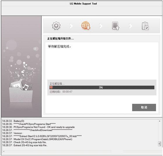 4、刷机工具开始检查手机。检查通过后,刷机工具开始解包,等待软件提示更新完成后手机自动重启说明刷机完成。