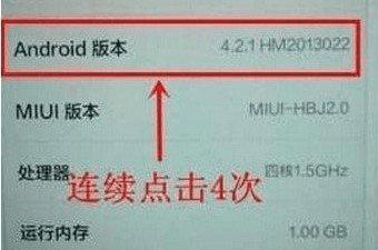 3、进入关于手机列表后,连接点击4次“Andorid版本”便进入开发者模式。如上图所示: