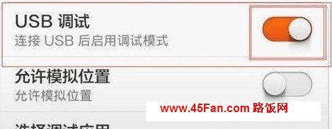 4、最后就可看到USB调试选项,往右拖动,显示为黄色代表开启。