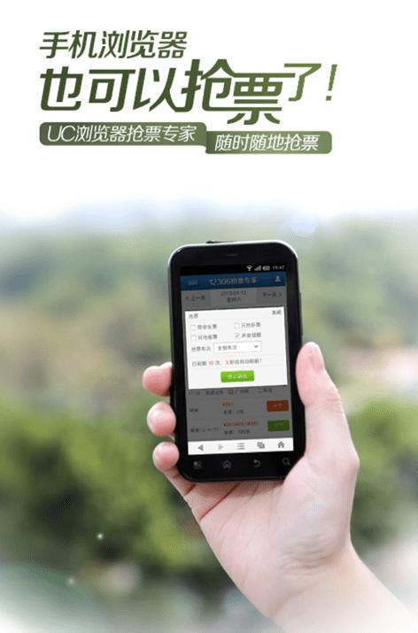 1、UC浏览器。12月20日,UC抢票专家全线升级,首次推出“预约抢票”功能,可全方位帮助用户解决“春运”一票难求的烦恼。现在登录UC抢票专家即可预约抢刷12月28日至2月24日长达两个月期间的火车票。用户通过UC浏览器抢票专家提交预约抢票日期、车次等就可安心等至放票日期。届时UC浏览器抢票专家会提供提前一天抢票提醒、云端刷票、刷到票提醒等贴心服务。