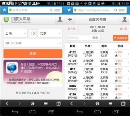 2、百度手机浏览器。为了抢占先机,百度手机浏览器推出了双剑合璧的“云端抢票+验证码自动识别”两大功能,以确保在春运期间广大用户能够大幅提高抢票成功率。所谓云端抢票,就是用户提交购票需求后,技术后台会通过技术手段帮助用户抢票,用户再也不用盯着手机、电脑不停地刷票了,而且购买成功后,抢票后台还会以短信的方式通知用户已经成功购票。此时,用户只需登录网站或去购票点完成支付即可。