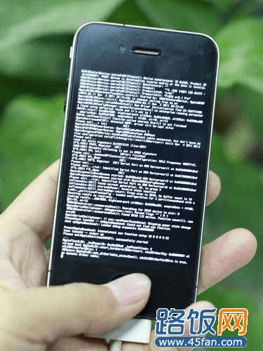 此时手机会出现这些图标,然后是出现各种黑底白字的代码,接着就是熟悉的菠萝人了。只要慢慢等待就行,注意这时候不要触碰手机以免出现掉线情况。越完后手机会自动重启。