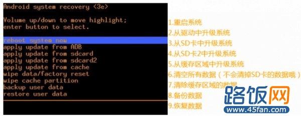 第二步:分别选择“wipe data/factory reset”和“wipe cache partition”。如下图: