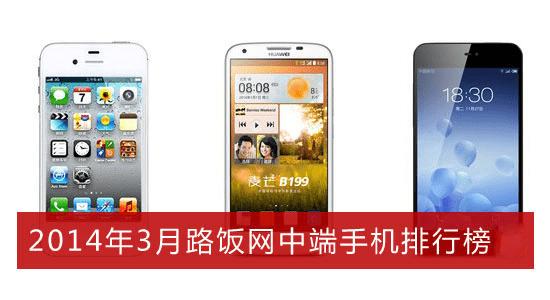 2014年3月路饭网的中端手机排行榜终于发布了,中端手机的概念,小编个人认为是介于1500元-3000元之间的手机。下面是具体的榜单内容。