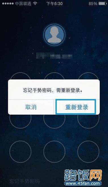 第二步:点击【重新登录】按钮,然后重新登录支付宝钱包即可解除手势,非常方便。
