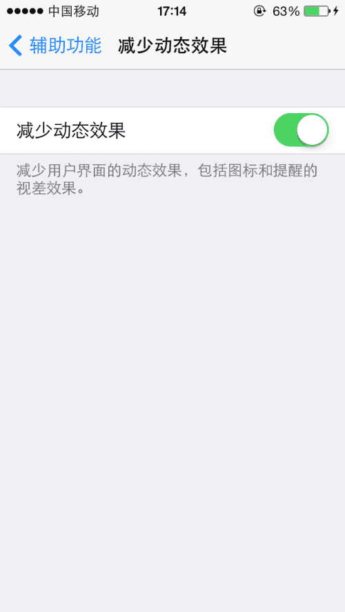 首先我们进入到【设置】--->【通用】--->【辅助功能】--->减少动态效果,然后点击按钮就可以了!