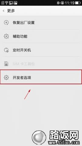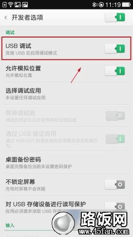 3)点击“开发者选项”,把USB调试开启就可以了。(如下图所示)