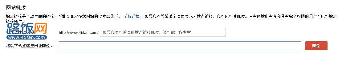 当然,如果您觉得图片过小,也可以"点击这里"查看显示效果。笔者随后登陆了Google管理员工具,据谷歌自己的解决为:站点链接是自动生成的链接,可能会显示在您网站的搜索结果下。 了解详情。 如果您不希望某个页面显示为站点链接,您可以将其降位。只有网站所有者和具有完全权限的用户可以将站点链接降位。