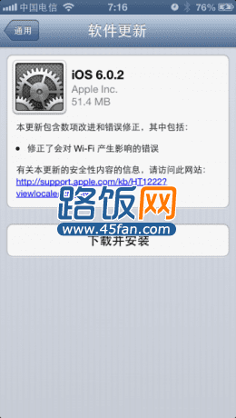 另苹果今年11月1日放出iOS 6.0.1系统升级。该版本修复了多个问题,其中包括iPhone 5用户无法进行无线软件升级等。