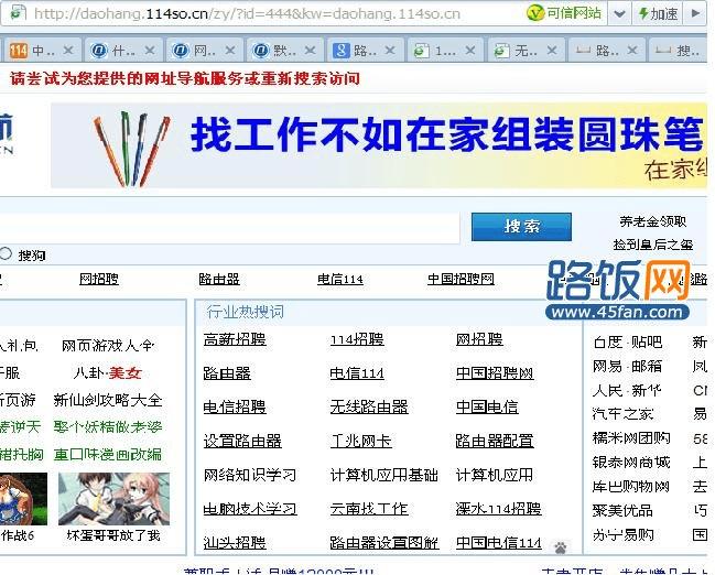 昨天晚上凌晨1点左右,笔者试着用手机登陆www.45fan.com,发现在UC浏览器中输入网址后,会自动跳转到114导航网址。难道是网站打不开吗?我接着用UC浏览器试了笔者的另一个网站www.14app.com,发现正常。笔者然后再相继试了几个网站,也都是可以正常打开的。难道是域名的问题?笔者之所以会第一反应是域名问题,是因为45Fan.com此域名是2012年2月5号注册的,距现在已快一年时间了,而且笔者了解到,一般域名到期前60天,会自动进入到锁定状态,如果不及时续费,则会被其他需要此域名的人抢注。
