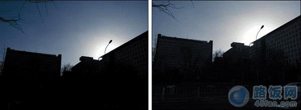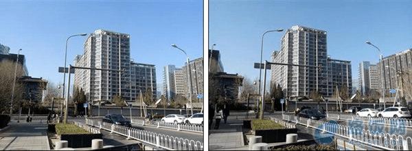 逆光情景主要考察的是手机的测光能力,在强光下准确突出主体能体现出处理器对光线的感知力和判断力。本组样张右边红米note表现效果要好于左侧,天空颜色虽然色彩浓度不如魅蓝note,但建筑物的轮廓以及明暗度都能展现出来。