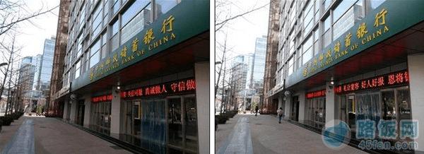 从室外街道照片来看,两台手机拍摄的照片都有明显曝光现象,特别是右图的红米note,照片最后放的建筑物已经涂白,而魅蓝note虽然天空已经曝光严重,但左后的建筑物色彩还原比较不错。